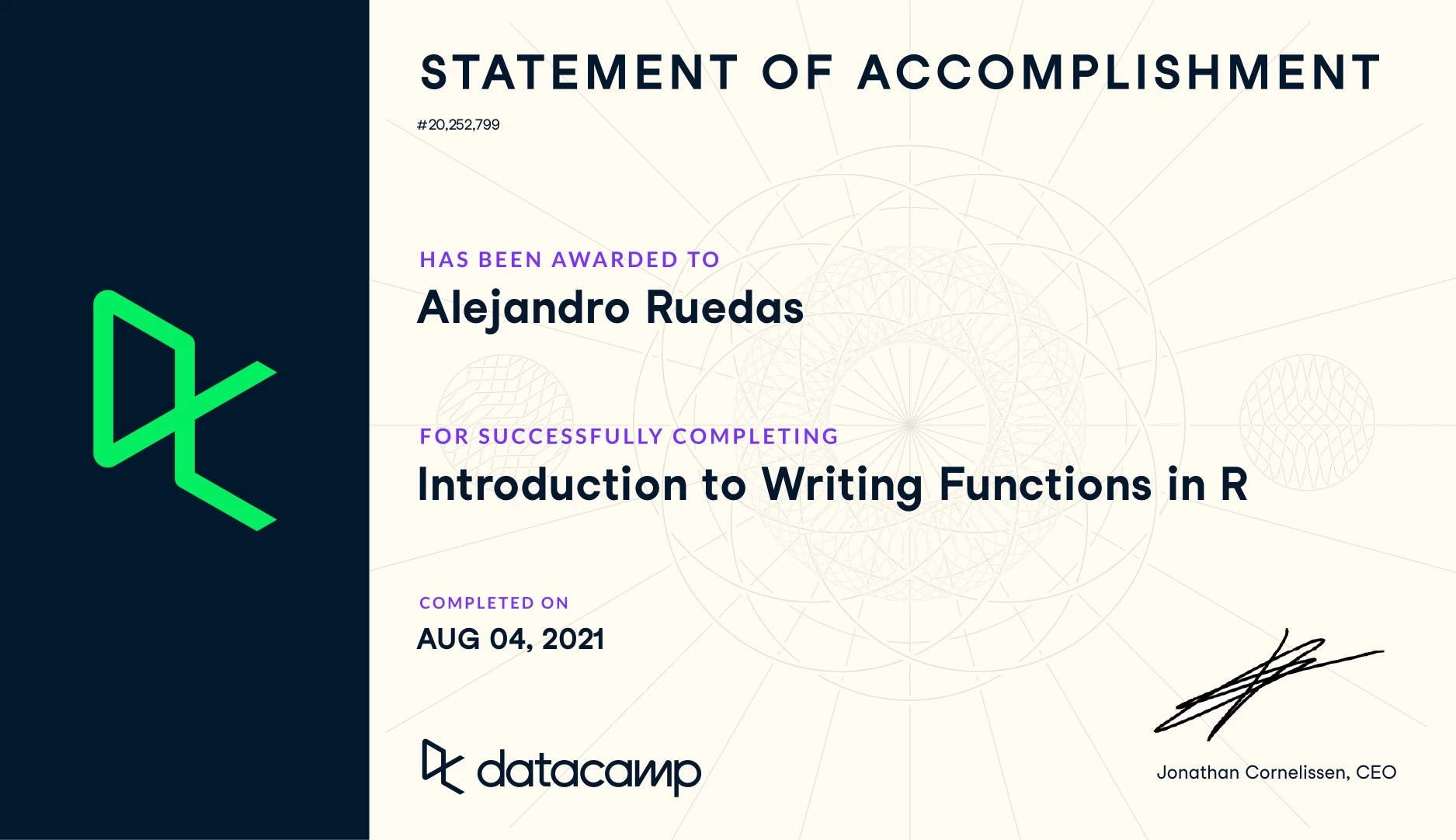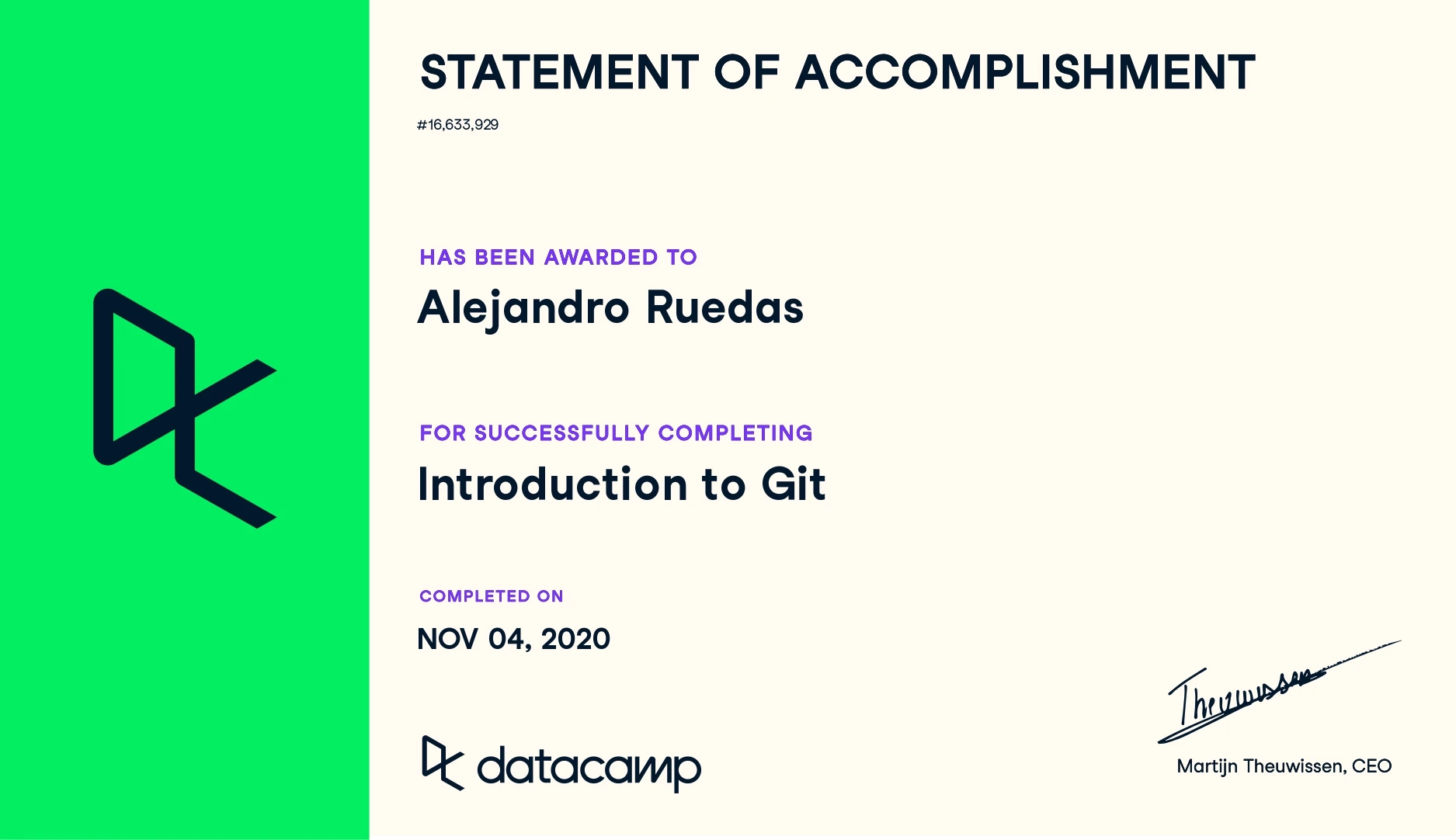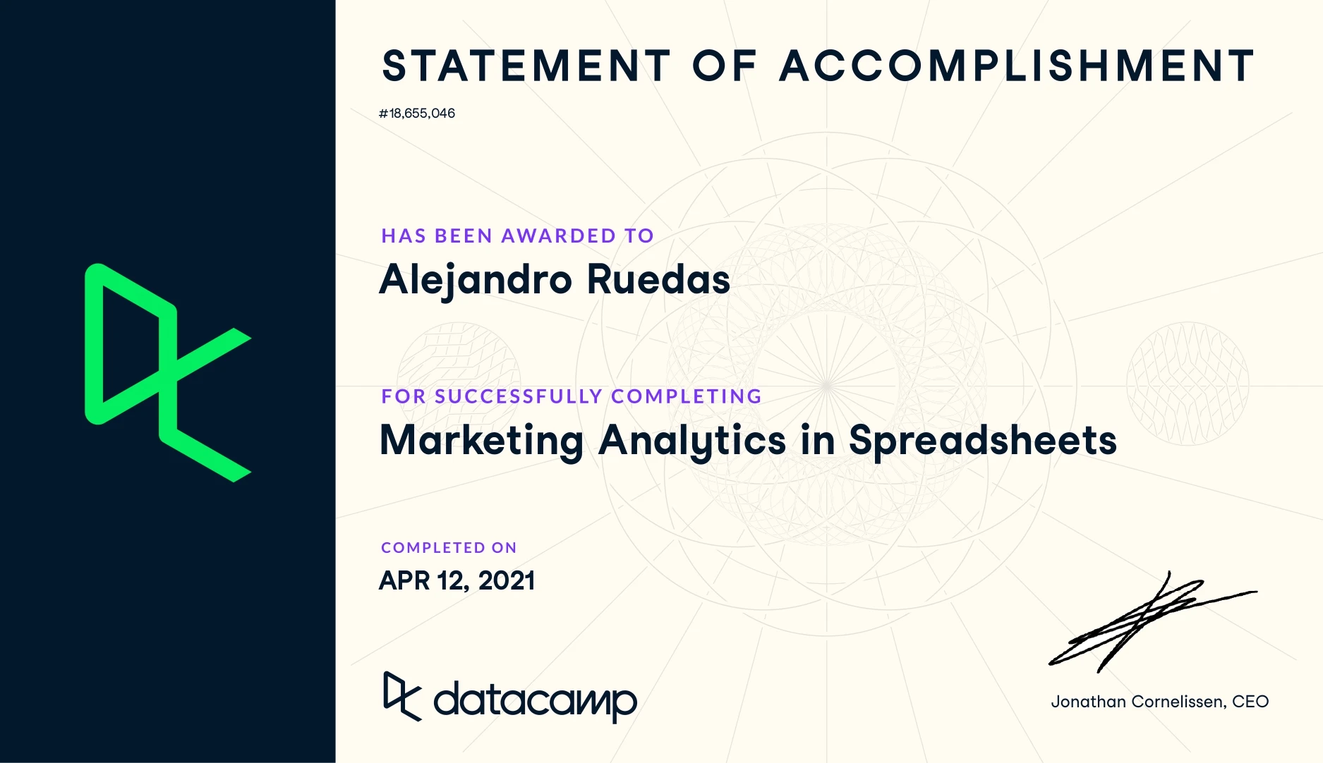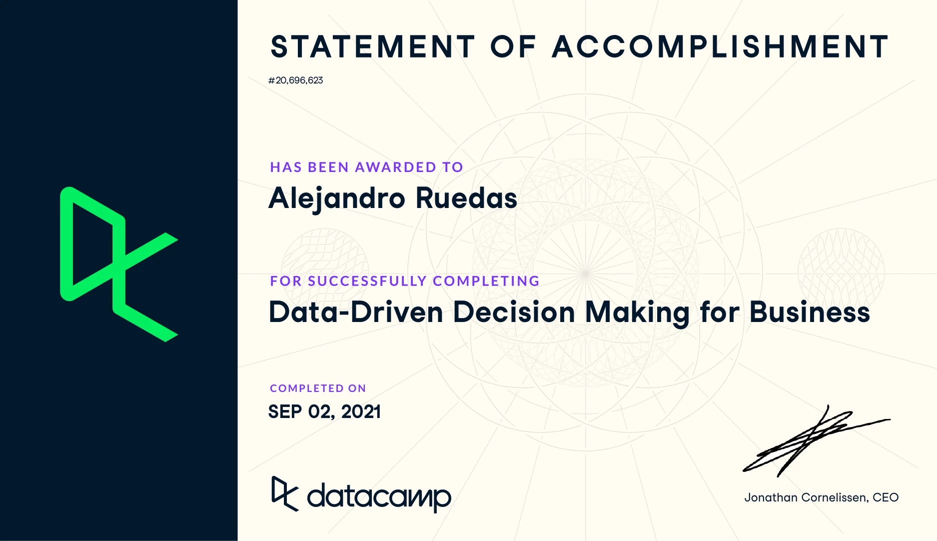 As a naturally curious person, I enjoy learning new things and developing new skills. Thanks to the advent of the Internet, we can keep learning anytime from anywhere. Although I have tried to narrow my focus on learning more about data science, programming and, most recently, web development, you can find links to all my certified training down below.